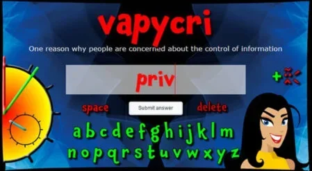 Use the letters and keyboard to type in and enter the correct word before the time expires. Hints are provided for the terms.